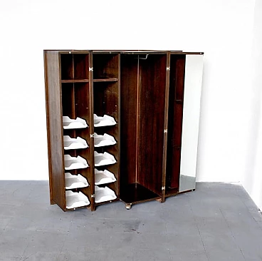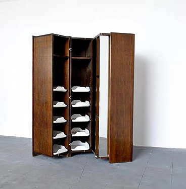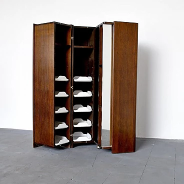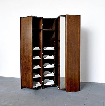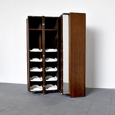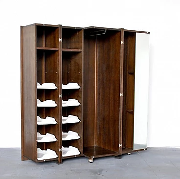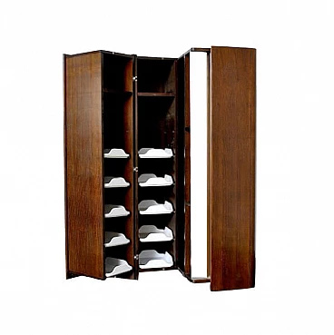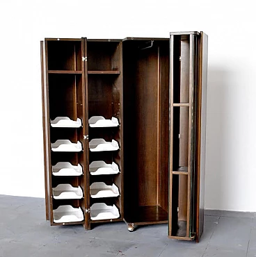 Travel closet by Giovanni Offredi, 1960s. 180-degree opening. When open the closet is 152 cm wide, 54 cm deep, 160 cm high. When closed it is 76 cm wide and deep.