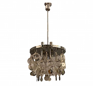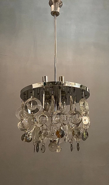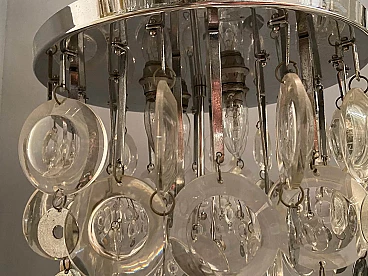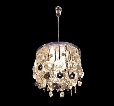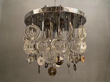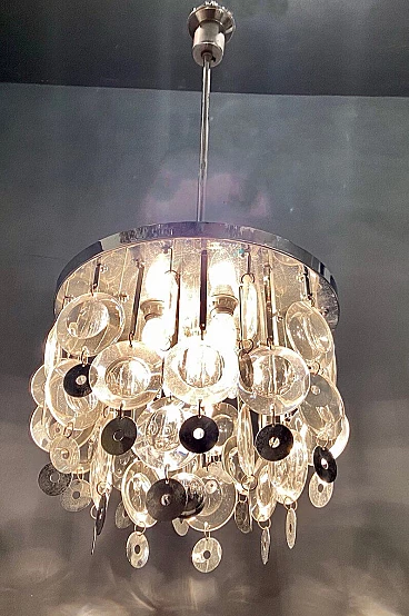 Chandelier in glass and chromed metal discs by Oscar Torlasco, 70s