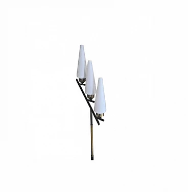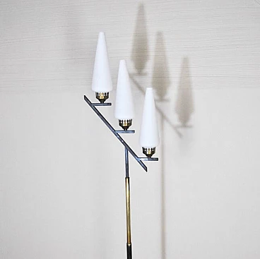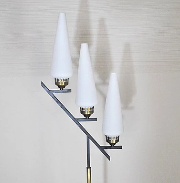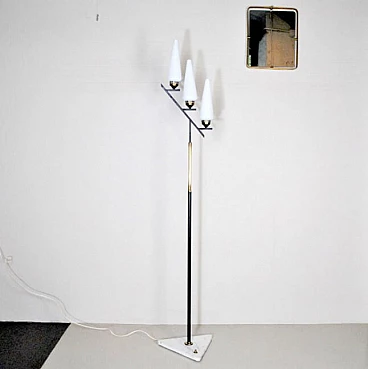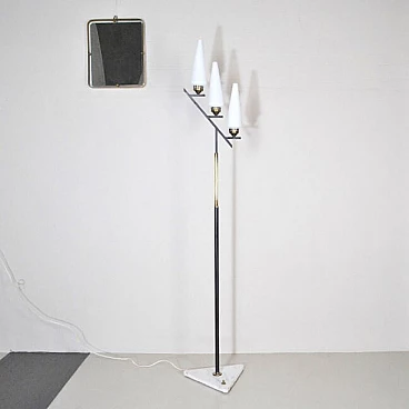 Floor lamp in brass, opaline glass and marble by Stilnovo, 50s