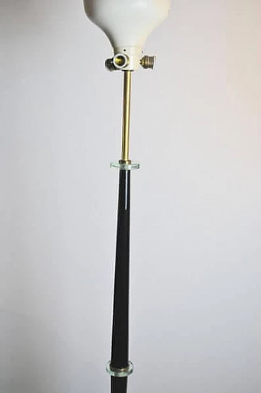 Floor lamp in aluminum, brass, glass and wood in the style of Fontana Arte, 50s