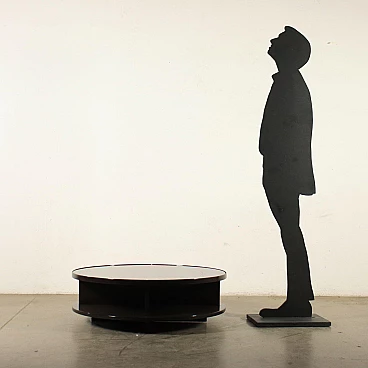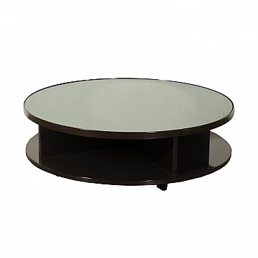 Coffee table in lacquered wood and smoked glass, 70s