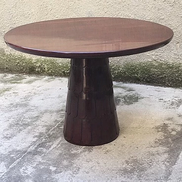 Occasional round table in rosewood with flake decoration on the central leg. Very solid and elegant