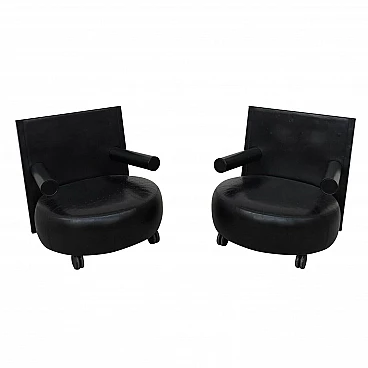 Pair of Baysity leather armchairs by Antonio Citterio for B&B Italia, 80s