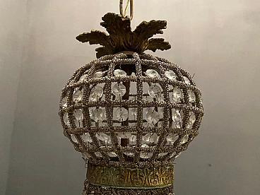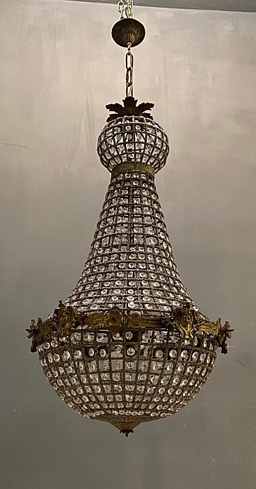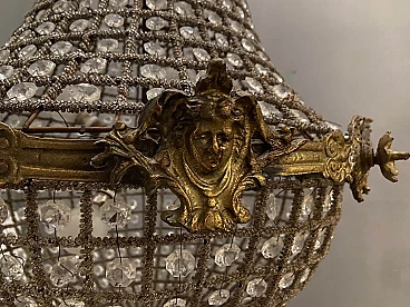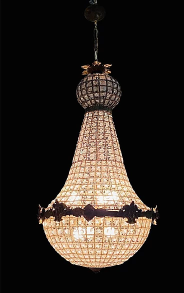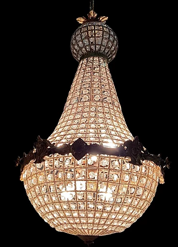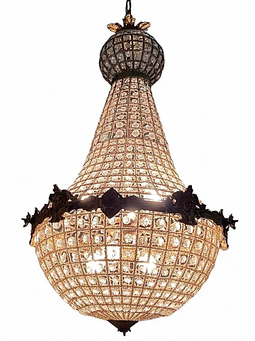 Set of 2 Large Crystal Beaded Chandeliers Bronze frames entirely covered in crystal beads Bronze frames decorated with figure heads Features 6 Lights Requires E14 light bulbs Height without chain and ceiling canopy 90 cm Height including chain and ceiling canopy 114 cm Chain can be lengthened or shortened to meet your needs Width 50 cm Restored wiring installed compatible with UK Europe USA. Shipping In a wooden crate for safe arrival