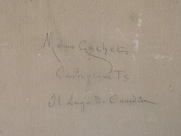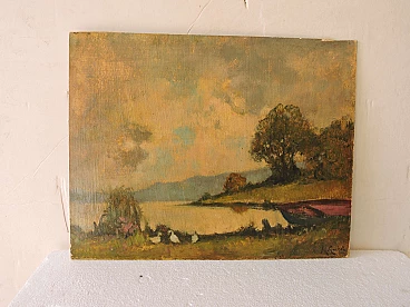 Oil painting on cardboard Il lago di Candia by Mario Gachet, 60s