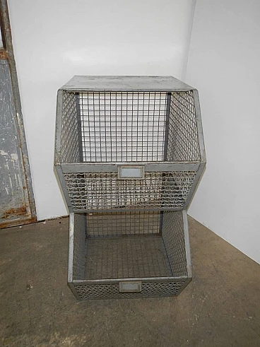 Industrial Wire mesh container with 2 compartments originally for shoe factory, 70s