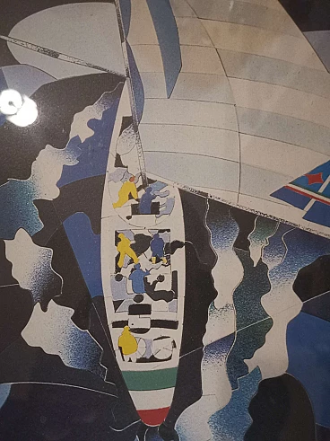 First edition poster by Ugo Nespolo with Italian sailing boat Azzurra