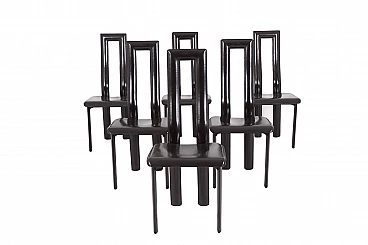 6 Regia chairs in black leather by Antonello Mosca for Ycami, 1981.