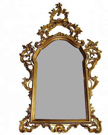 Mirror in Barocchetto style in gilded wood, 40s