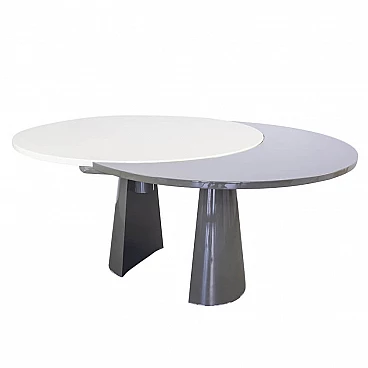 White and green lacquered wood dining table, extendable shelf. Metal base, good condition, slight signs of time and use.