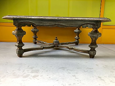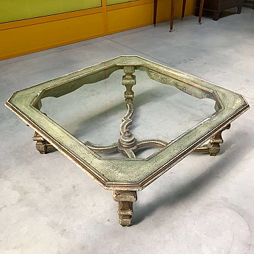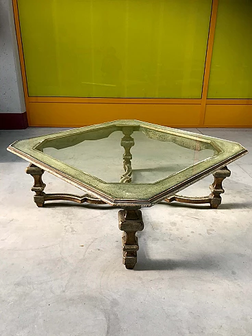 Lacquered and gilded Louis XIV style coffee table with glass top, original beginning 20th century