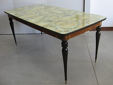 Rectangular table in walnut with marbled glass top, 60s