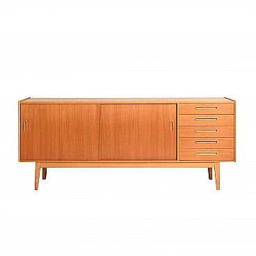 There are two sliding doors and five drawers, embellished by the long handle carved in wood.