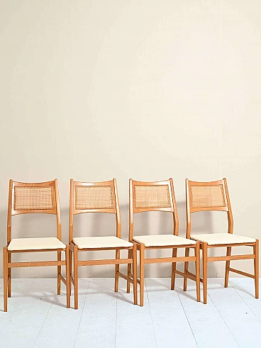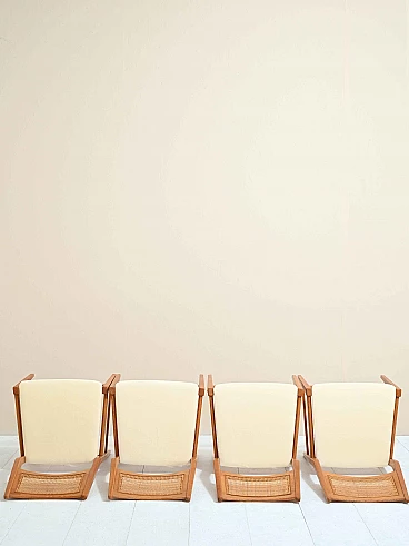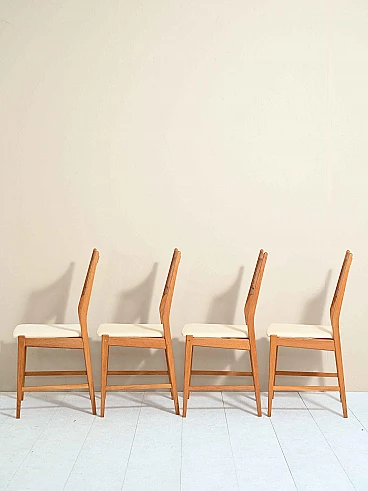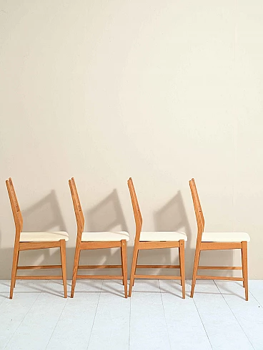 Featuring an understated, modern design, they are perfect for adding a Nordic touch to the home. The cream colored seat matches both classic and more eclectic environments. Good condition. They present some signs of time. The seat has been reupholstered in velvet. Please pay attention to the photographs.