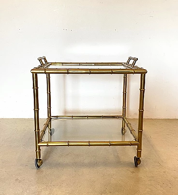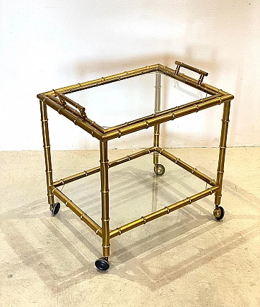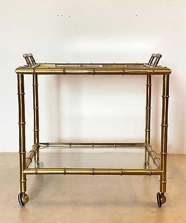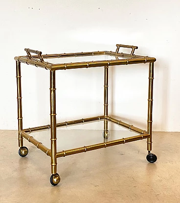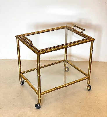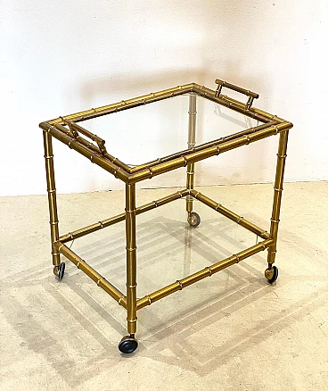Fake bamboo brass bar trolley with removable tray, 1970s