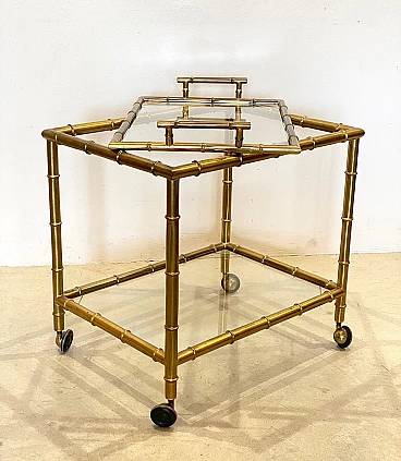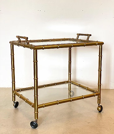 70s bar trolley in fake bamboo brass, removable tray