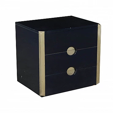 Small piece of furniture with drawers; lacquered wood with chromed metal outlines and details.
