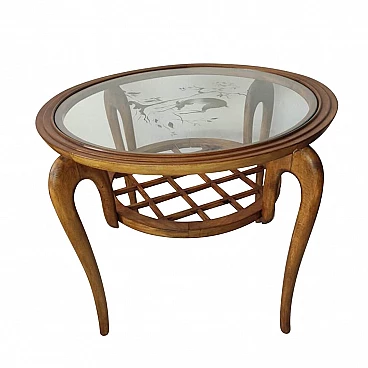 Coffee table with glass top, Buffa style, 1960s. Original serigrfed glass with a deer design, in good condition, from a home in Milan.