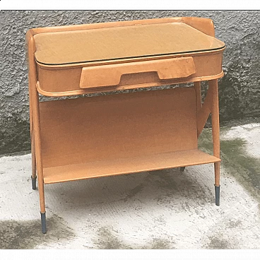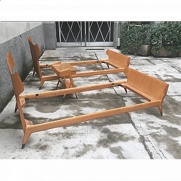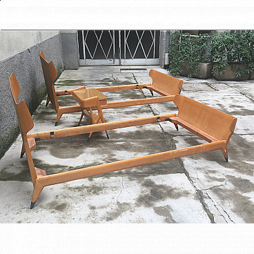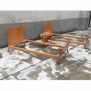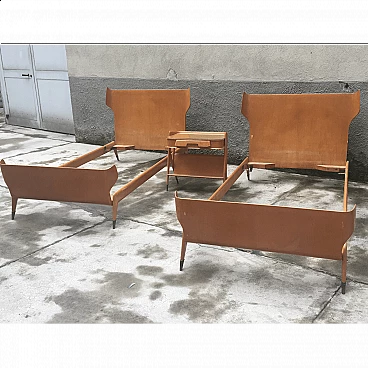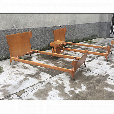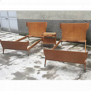 Mid century Italian bedroom set with 2 single beds and 1 bedside table, Gio Ponti style