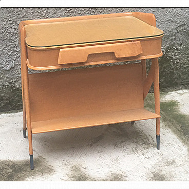 This is a rare Italian Mid-century style bedroom set, including a pair of single beds in the style of Gio Ponti and a glass topped bedside table with drawer. The set is all made of ash wood with very stylish aluminium feet.
