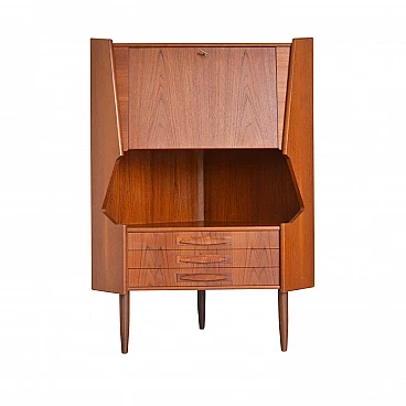 Danish teak corner bar cabinet by Omann Jun, 1950s