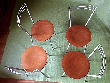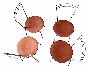 4 Iron and cherry wood dining chairs by Calligaris, 1990s