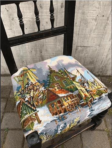 Neo-Renaissance chair with cross stitch seat from the 1920s