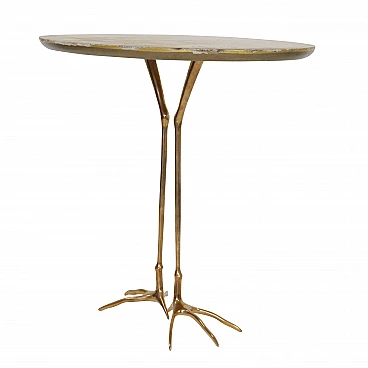 Traccia model table with elliptical top with shaped edge, feet made of cast bronze. Upper part of the top in pure gold leaf.