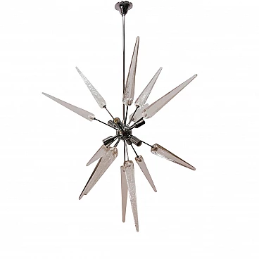Sputnik chandelier with 6 lights in chromed metal with transparent glass.
