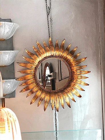 Mirror in a golden frame in the shape of a sun