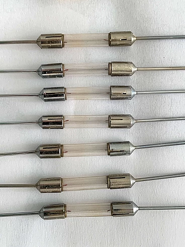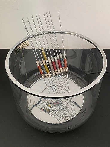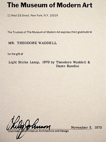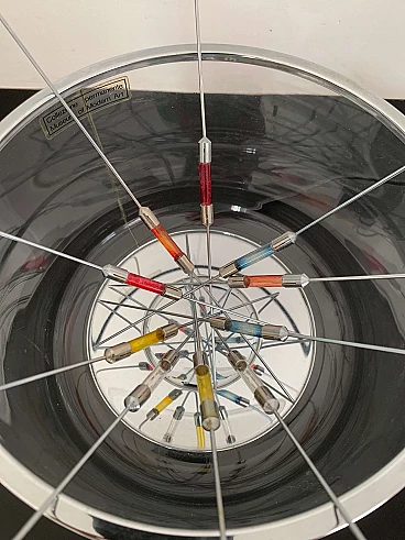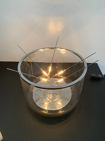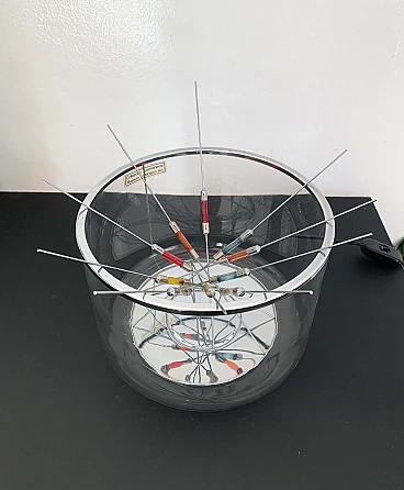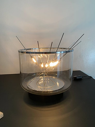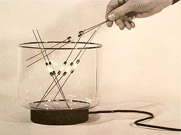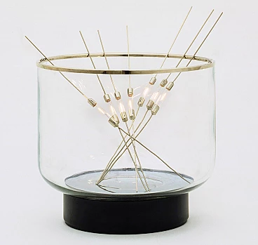 Rare and prestigious lamp permanently exhibited at the Moma in New York. The lower cylindrical metal plate of the lamp sends a very small amount of current through the lower tips of the "lamp rods", illuminating the small bulbs enclosed in the center.