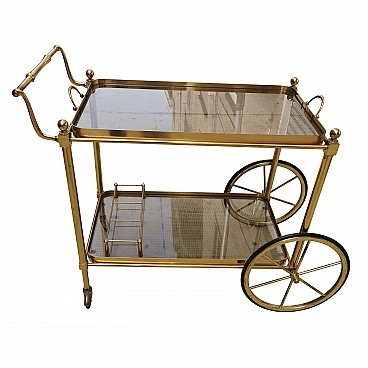 Neoclassical style brass bar cart with removable tray by Maison Bagués, 1940s
