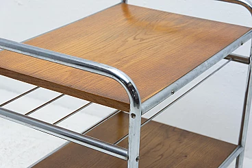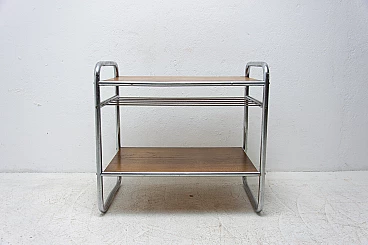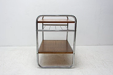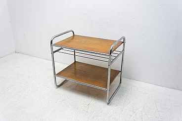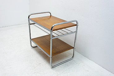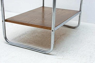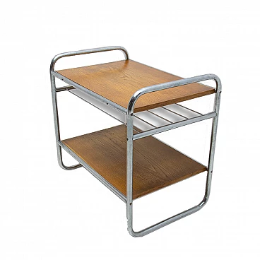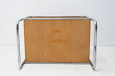 Chromium-plated coffee table, made during the Bauhaus period in the former Czechoslovakia, most likely in the 1930s. It has a chrome frame and oak panels. The table is generally in very good condition, showing slight signs of age and use.