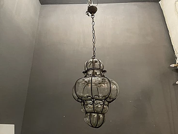 Lamp - lantern in Murano glass. Hand-blown Murano glass with iron structure Height without chain 50 cm Height with chain 95 cm. 1 light Requires E27 bulb New wiring installed compatible with Europe and UK Shipped in a wooden crate for safe arrival