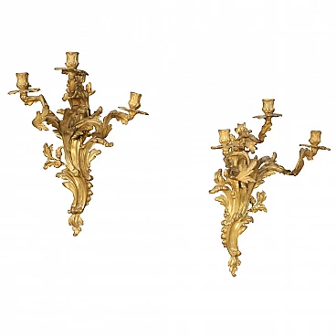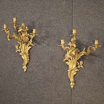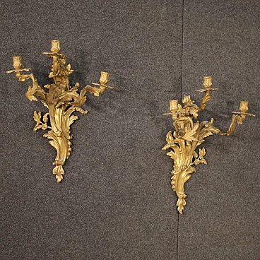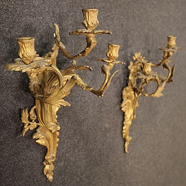 Pair of french wall sconces in gilded bronze in Louis XV style