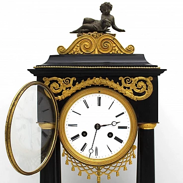 Direttorio clock with pendulum in gilded bronze and black Belgium marble, 18th century