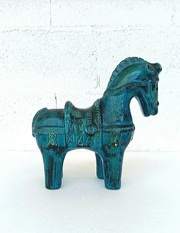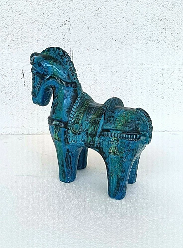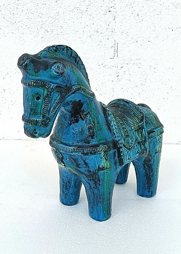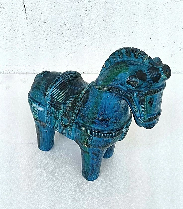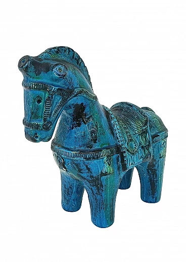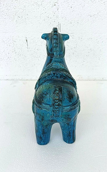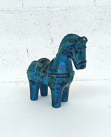 Rimini blue horse in glazed ceramic by Aldo Londi for Bitossi, 70s