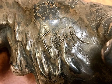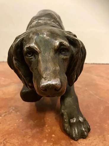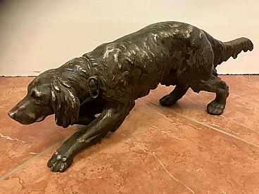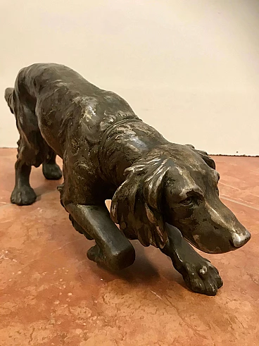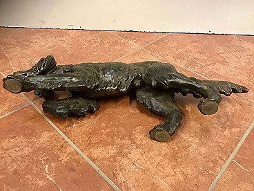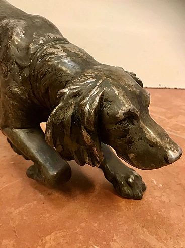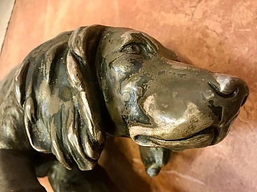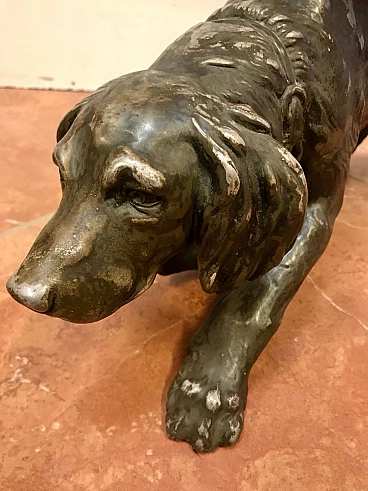 Hunting dog in terracotta laminated in silvered copper by R. Teglio, 40s