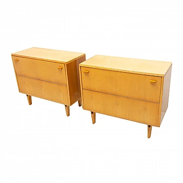 This dresser was designed by the Czechoslovak architect František Mezulánik for the company Nový Domov in the former Czechoslovakia in the 1970s. It can also be used as a TV stand or small chest of drawers. It is made of beech wood. Very interesting and simple design. This item is in good condition, shows signs of age and use. The price is for the piece.