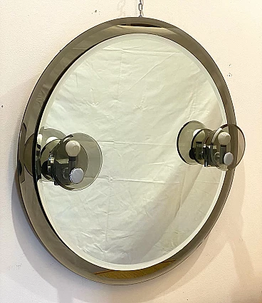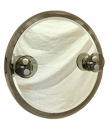 Round mirror with wall sconces, 70s