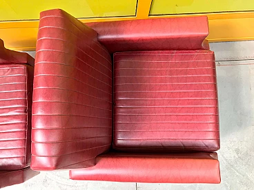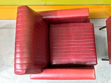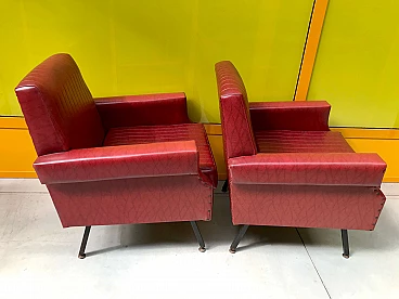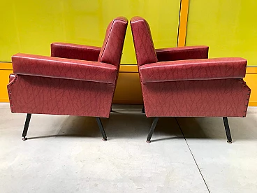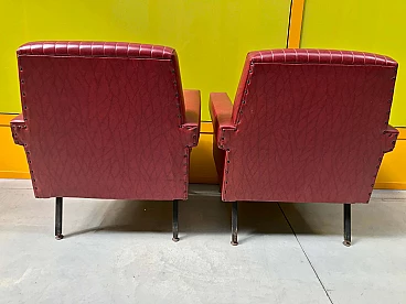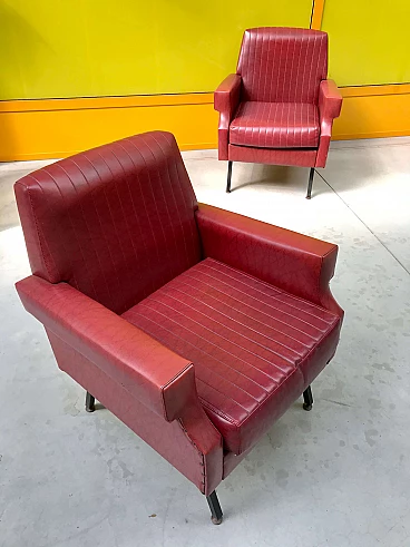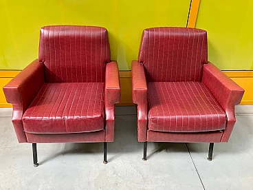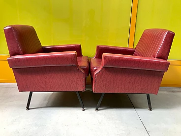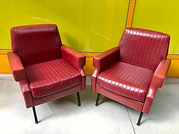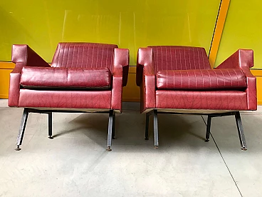 Pair of amaranth skai armchairs with black metal feet, 60s