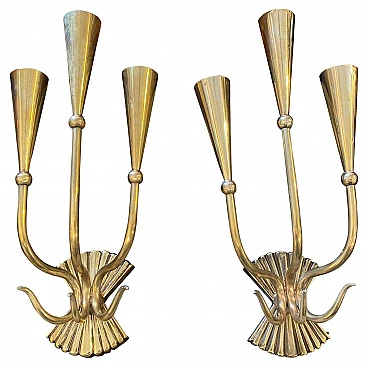 Pair of wall sconces in brass by Cesare Lacca, 50s