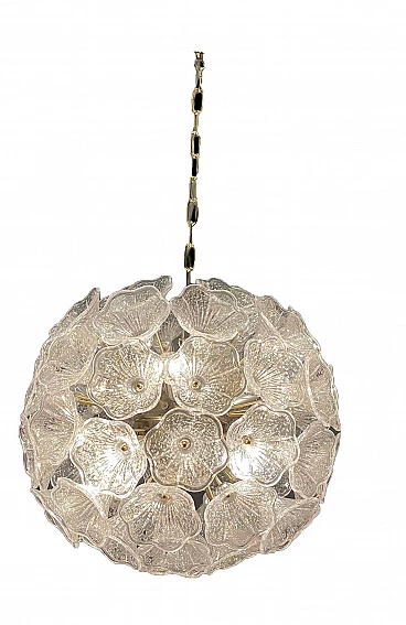 Midcentury Murano Glass Flower sputnik chandelier by Venini. Diameter 50 cm. Features 8 lights, requires E14 screw on light bulbs. Height without chain and ceiling canopy 50 cm, height including chain and ceiling canopy 100 cm. Chrome frame, weight approximately 20 kg. New wiring installed compatible with Europe UK. Shipping In a wooden crate for safe arrival.