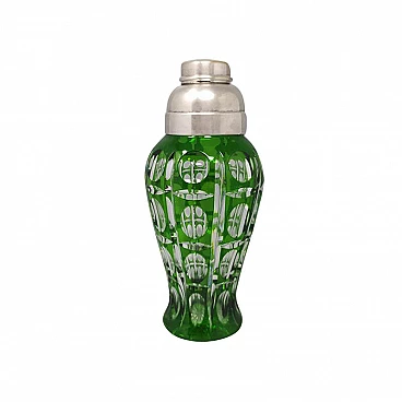 Bohemian green crystal cocktail shaker, 60s