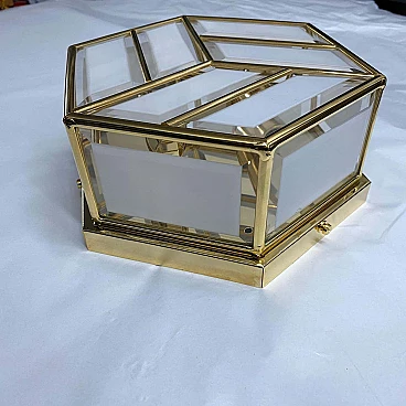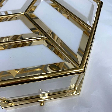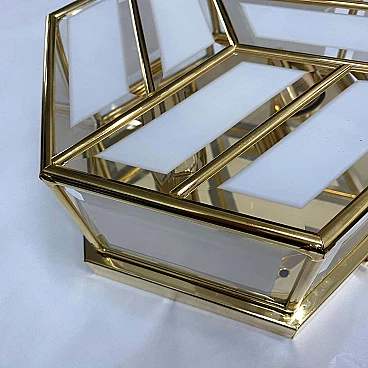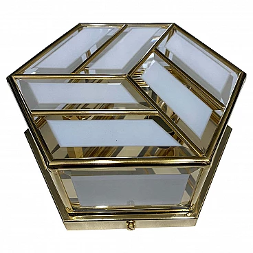 Hexagonal brass and glass ceiling lamp, 1970s. Probably never used, operates on 110-240 volts and needs normal bulbs.