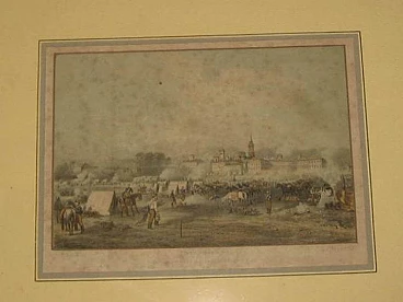 Camp of the Cacciatori d'Africa, lithograph, Novara, 19th century
