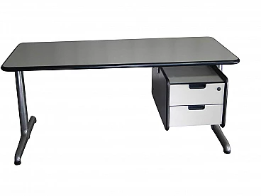 Office desk in white ant and rubber with aluminium legs, with drawers, produced by Anonima Castelli. In good condition.