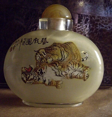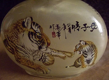 Snuff bottle in painted glass, 50s