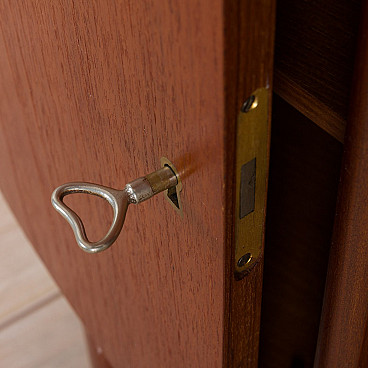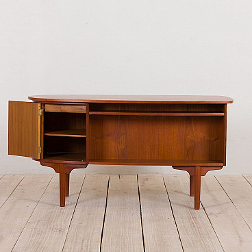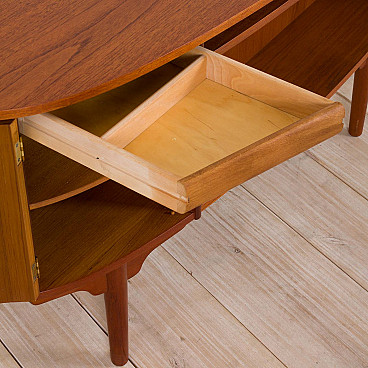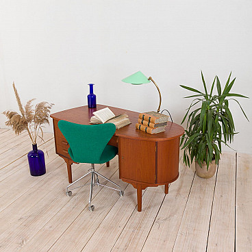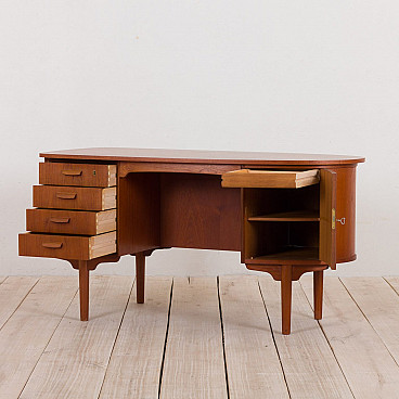 Free standing bullet shape executive desk in teak by H.P. Hansen for Randers Møbelfabrik, 60s