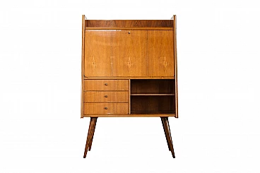 Sideboard cabinet with flap desk, chest of drawers and various shelves, made entirely of blond wood. 1950s Italian modernism with slight signs of time